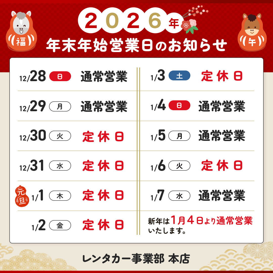 誠に勝手ながら、12月30日~1月3日の期間を年末年始のお休みとさせていただきます。